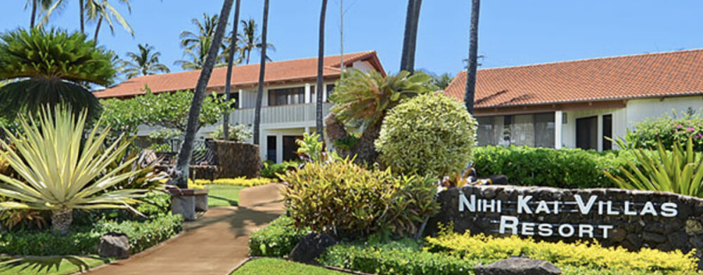 Occupying a prime location in sunny Poipu Beach Kauai, Nihi Kai Villas Resort is just steps away from the Poipu shoreline and a few yards from Brennecke's Beach and Poipu Beach Park. Nihi Kai Villas' plantation-style architecture sprawls across terrain enlivened by palm trees, tropical flowers, fruit trees, orchids, plumeria trees and well-manicured lawns. Guests of Nihi Kai Villas will enjoy an oceanfront outdoor pool, tennis courts, paddleball court and two outdoor grilling areas.