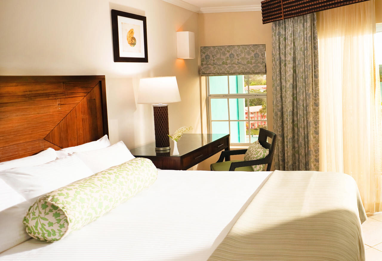 St. James's Club Morgan Bay houses 335 rooms situated amongst over twenty acres of lush tropical gardens. Studio or one-bedroom units in a variety of configurations are available, with either garden or ocean views. All units include air conditioning, private bathroom with tub/shower, safety deposit box, hairdryer, direct dial telephone, tea/coffee maker, iron/ironing board, satellite TV and beach towels.