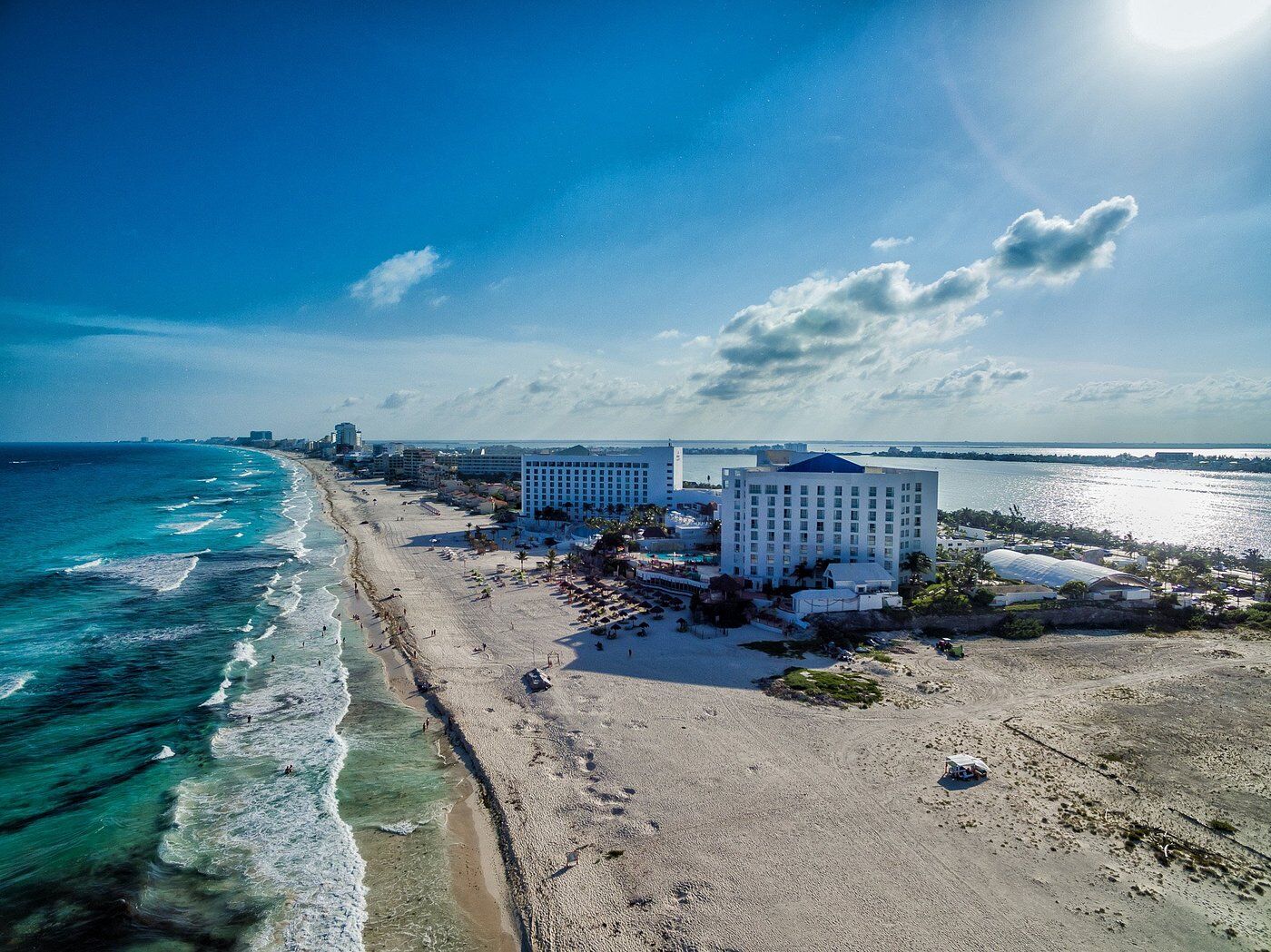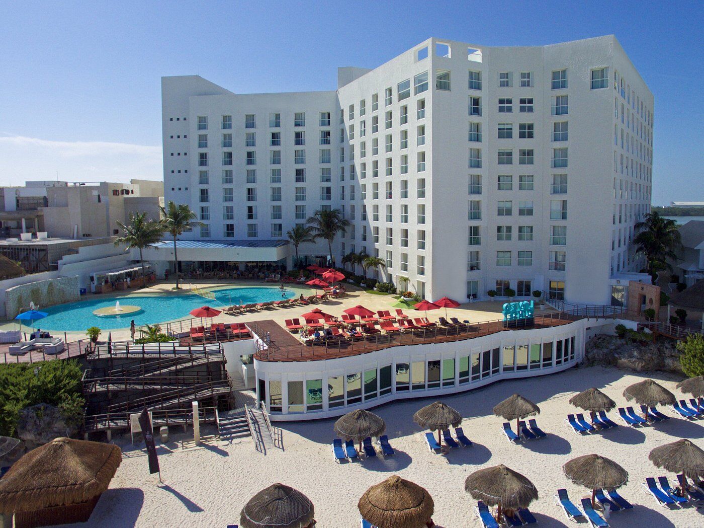 Overlooking the shimmery turquoise waves of the Caribbean Sea lies Sunset Royal Beach Resort! In addition to a perfect location from which to experience all Cancun has to offer, this resort offers guests amenities such as a swimming pool, four restaurants, three bars, a theater, fitness center, sky lounge, playground, activities, giant chess set and so much more!
