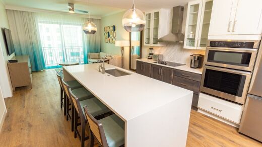 Units range in size from one-bedroom to four-bedroom villas. Each unit features a fully equipped kitchen, allowing guests to prepare meals just like at home, along with a separate living and dining area for relaxing or entertaining. Many units offer private balconies with beautiful ocean or resort views, and modern amenities like flat-screen TVs, complimentary Wi-Fi, in-unit washers and dryers, and cozy bedding ensure a stress-free stay. Whether you're traveling as a couple, family, or group, these well-appointed villas provide a welcoming retreat after a day of sun and sand.