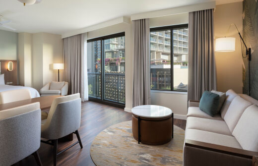 Marriott Vacation Club, Waikiki lies in Honolulu's vibrant shopping and dining district located close to Waikiki Beach. Here, modern stylishness blends effortlessly with the laid-back spirit of Oahu. A number of amenities are available onsite, such as a fitness center, rooftop deck with infinity-edge pool and breathtaking island and ocean views. The Mālolo Rooftop Bar & Bites serves up regional cuisine and refreshing signature drinks, and curated activities and events nod to Hawaiian culture.