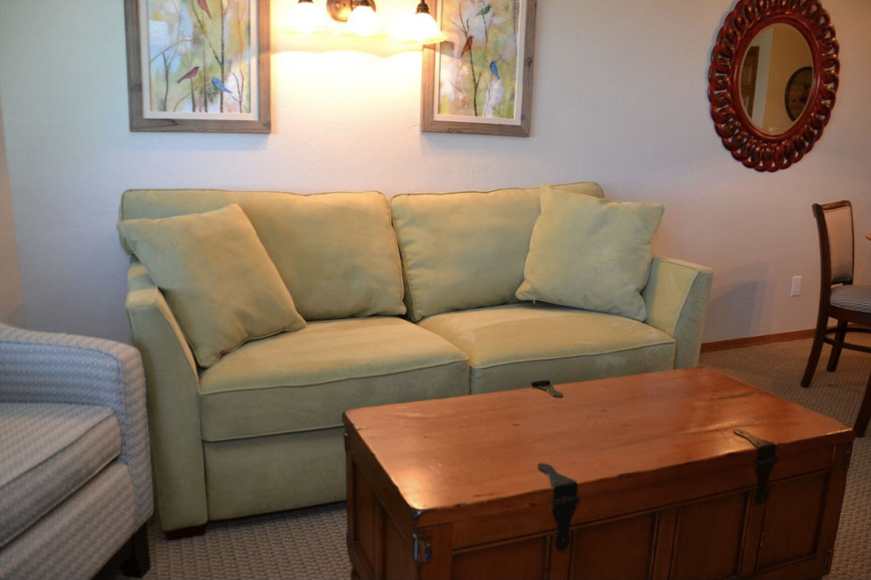 The one-bedroom, two-bedroom, and three-bedroom suites at Landmark Resort feature full kitchens, living rooms and private decks. Suites also come in several configurations, including one or dual-level, lofted or enclosed bedrooms and offer either woodland or water views! Some premier-categorized units also include an extra-large living area.
