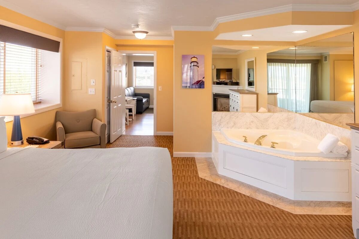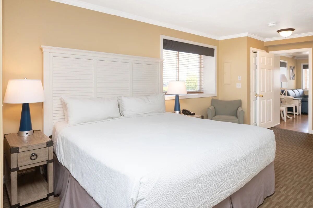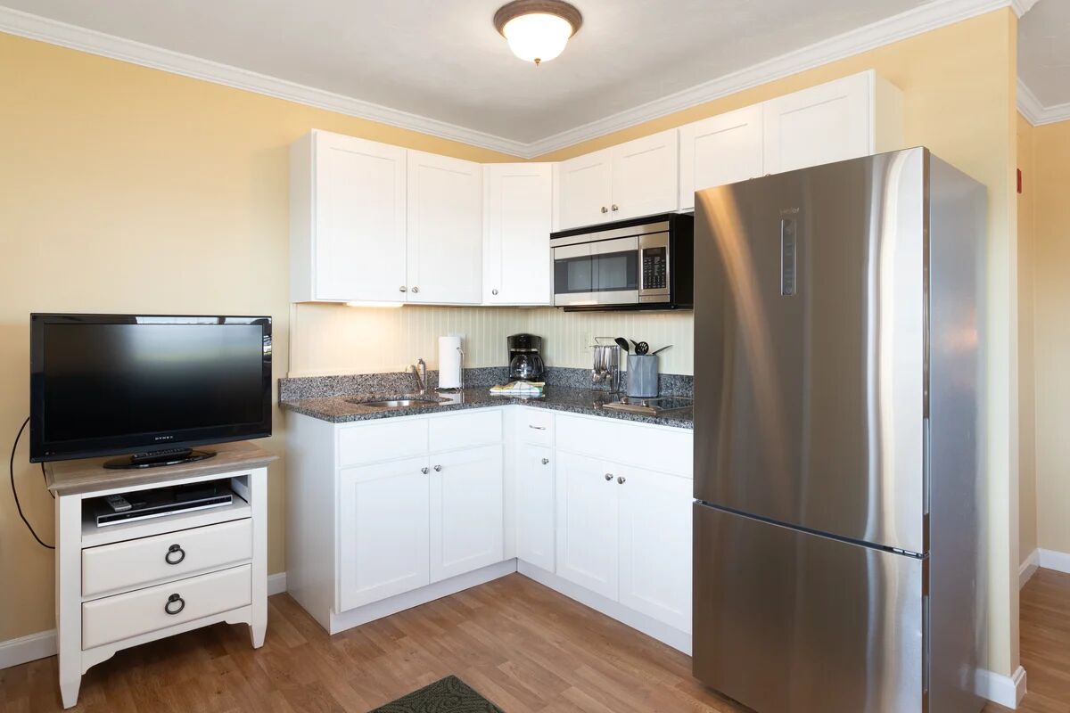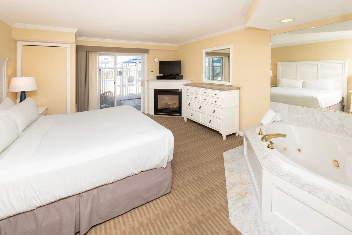 Each thoughtfully designed suite at Captain's Quarters features full kitchenettes with modern appliances, allowing guests to prepare their own meals while enjoying their Cape Cod getaway. The spacious one and two-bedroom suites include master bedrooms with cozy fireplaces and luxurious whirlpool baths, creating a romantic and relaxing atmosphere. All accommodations feature private balconies where guests can enjoy ocean breezes and scenic views, while comfortable living areas provide the perfect blend of home-like convenience and resort-style comfort for families and couples alike.