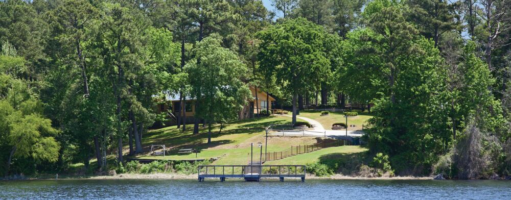 Nestled in the lush woods of East Texas, on the shoreline of Lake Palestine, the quaint rustic cabins at this resort are tucked away in close harmony with nature and create an ideal setting for rest and relaxation. Amenities and activities include a lighted tennis court, fishing pier, badminton, playground, swimming, miniature golf, children's' playground, and nature trails. Guests have a marina and boat dock access, jet ski rentals, and horseback riding facilities just a few miles away. Tyler and all it's attractions are 30 miles away, and Canton Trade Days or First Monday where people flock from miles around to buy and sell merchandise from handmade goods to exotic animals is just a short drive from the resort.